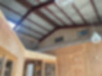 床の余白、倉庫天井までの高さの余白もたっぷり残した第一次工事。続いて、シャッターでの開閉だった正面開口部を木製建具と波板鋼板で仕上げた第二次工事も行った。